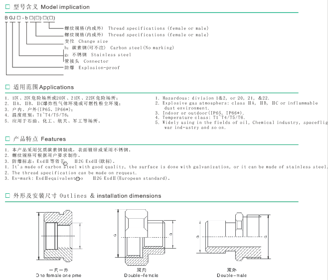 您當(dāng)前位置:首頁 > 產(chǎn)品中心 > 防爆管件 > 防爆變徑接頭 > BGJ-b系列防爆(變徑)