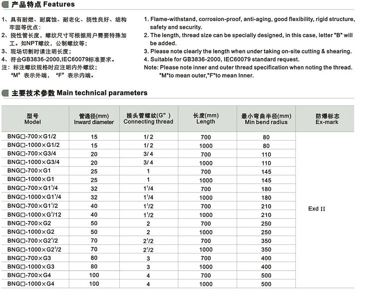 · 2、撓性管長度,螺紋尺寸可根據(jù)用戶需要特殊加工;